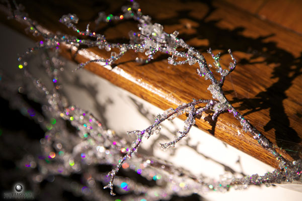 Bridesmaids had muff handwarmers, perfect for a cold January day.Sparkly branches kept with an icy winter wedding theme.
