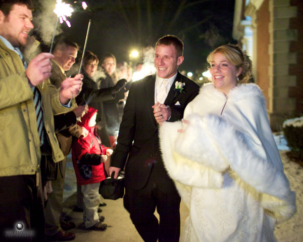 Katelin & Brian leave at the end of the night with sparklers all around.