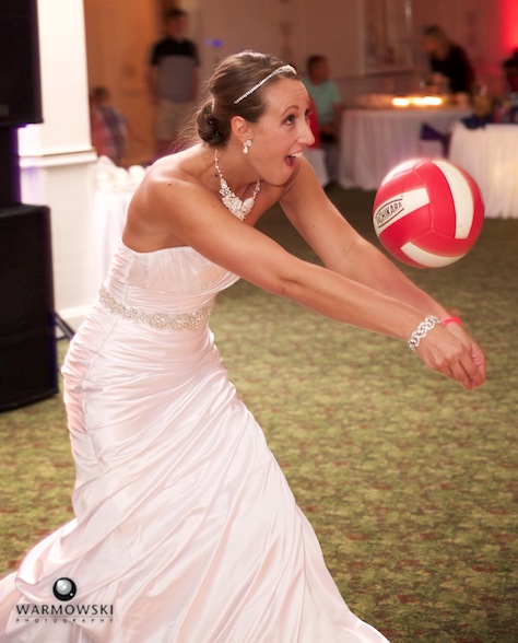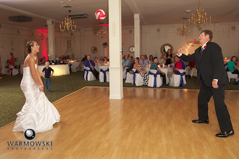Amber starts her first dance with her father, Bill. Wedding photography by Steve & Tiffany WarmowskiAmber and father practice volleyball hits, just like they did so many times when she was growing up. Wedding photography by Steve & Tiffany Warmowski