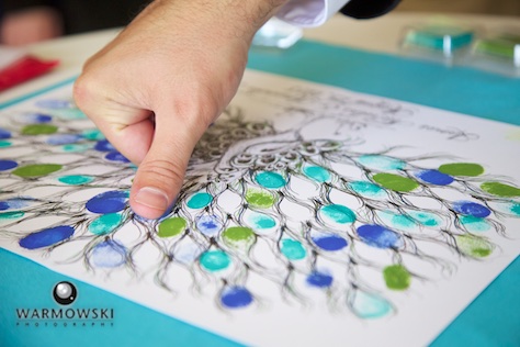Guest book follows peacock theme. Photo by Steve & Tiffany of Warmowski Photography.